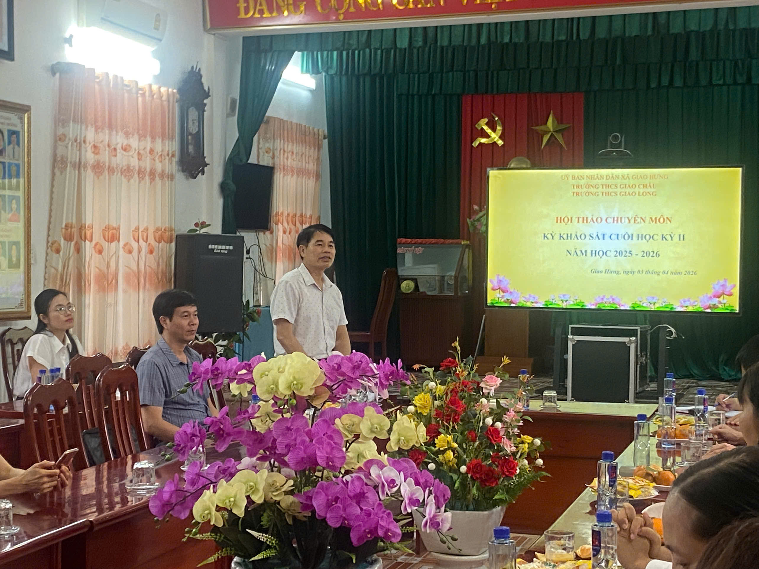 📚Chiều ngày 03/4/2026, trường THCS Giao Châu phối hợp cùng trường THCS Giao Long tổ chức Hội thảo chuyên môn về công tác ra đề khảo sát cuối năm học 2025–2026 trong không khí nghiêm túc, trách nhiệm và đầy tinh thần hợp tác chuyên môn.