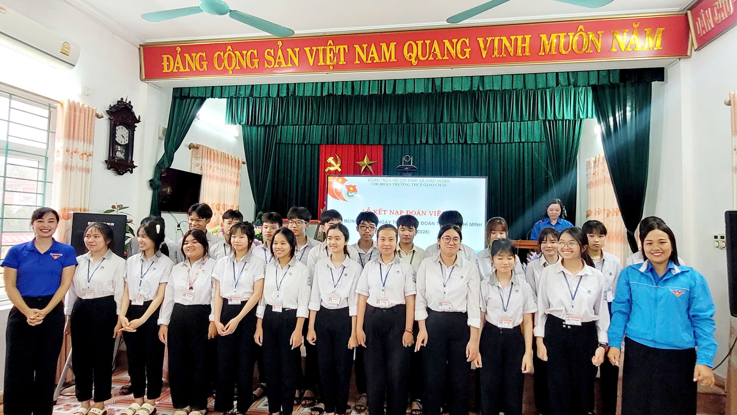 Chiều ngày 20/3/2026, Ban Chấp hành Đoàn TNCS Hồ Chí Minh Trường THCS Giao Châu đã long trọng tổ chức Lễ kết nạp Đoàn viên mới trong không khí trang nghiêm, ý nghĩa.